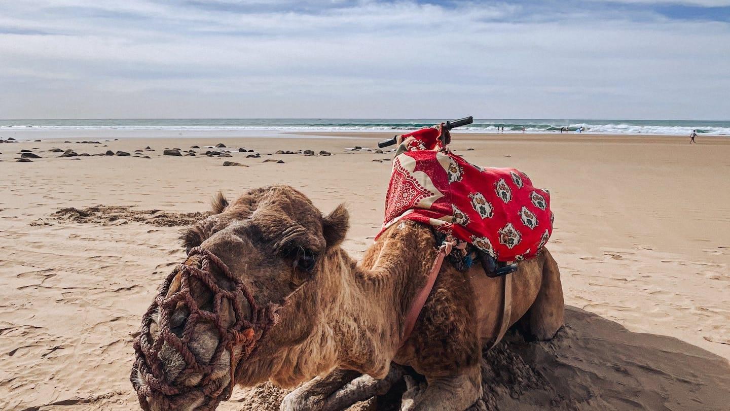 Frukost: Msemen (marockansk pannkaka), amlou (mandel-arganolja), mint-te och färskpressad juice. Caféer vid stranden: ca 30-50 kr.